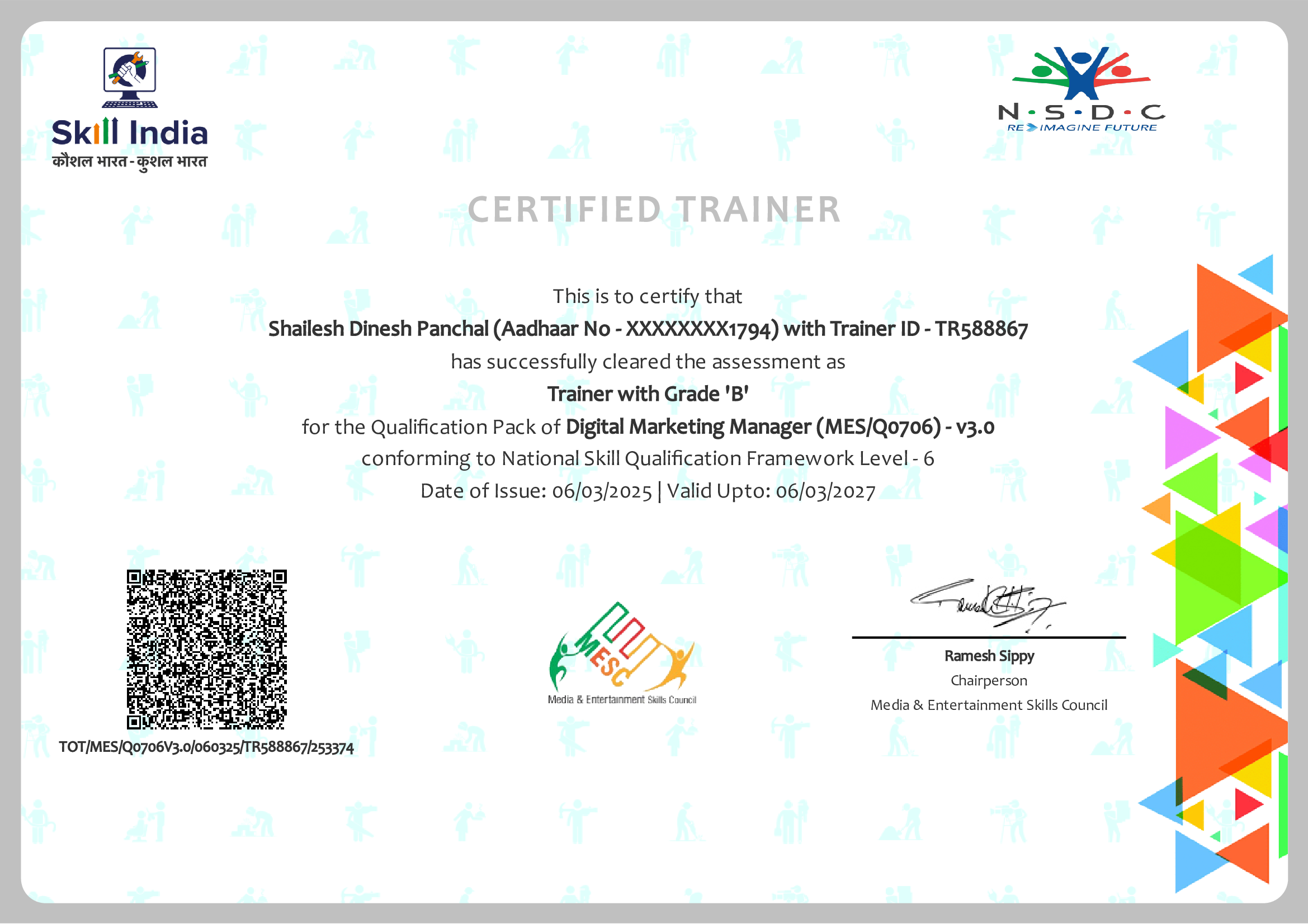 With 9+ years of experience as a Performance Digital Marketing Trainer & Skill India Certified Digital Marketing Trainer & Manager (since 2025).